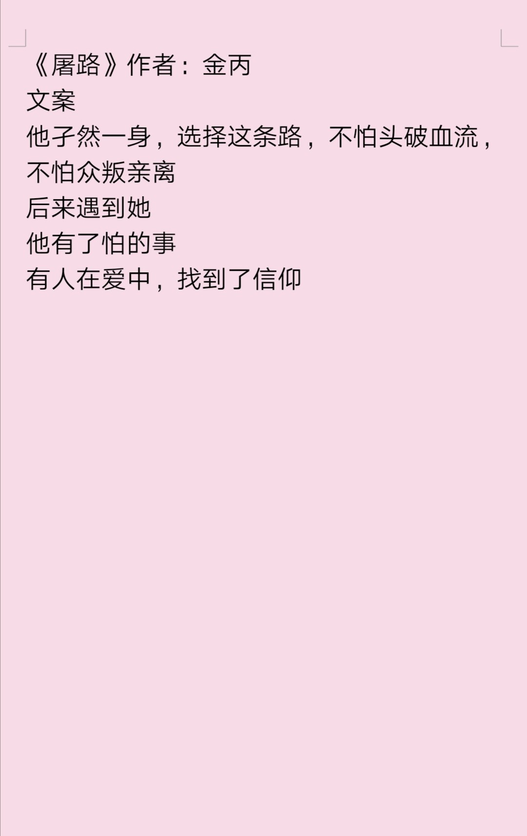 《屠路》很好看,不矫情不作,接地气,喜欢男女主,特别是女主酷酷的可你又不会觉得她是在装,而且智商一直在线,完全不是傻白甜 ,也不是玛丽苏。还有超喜欢男主,看了屠路突然好喜欢这类的糙汉子,男友力爆棚,man爆了。