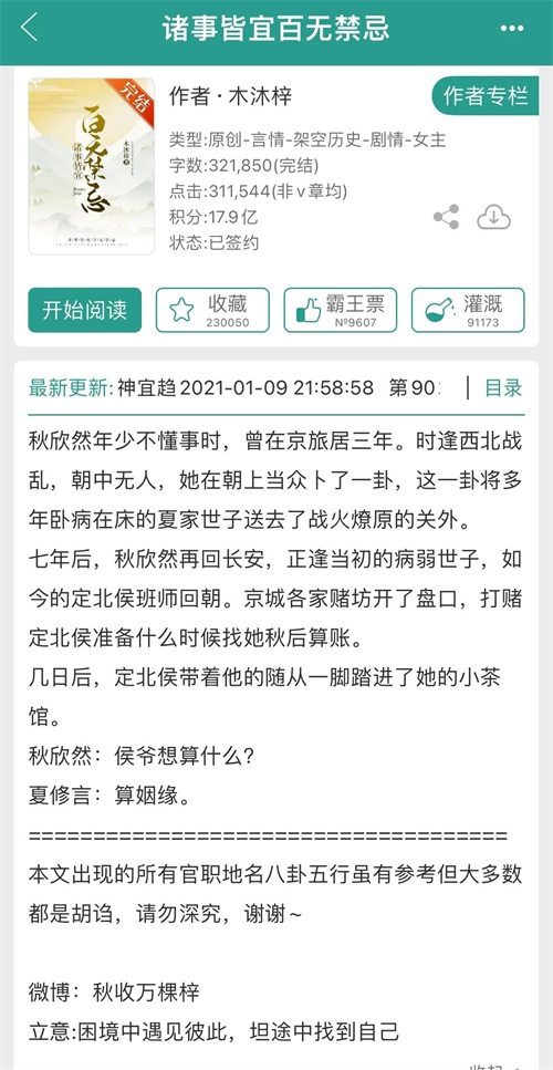这本以卜卦道士与少年将军的成长纠葛为主线,融合玄学、权谋与甜宠元素。讲述了女主秋欣然因一卦改变男主命运,七年后两人重逢后从对立到携手的故事。