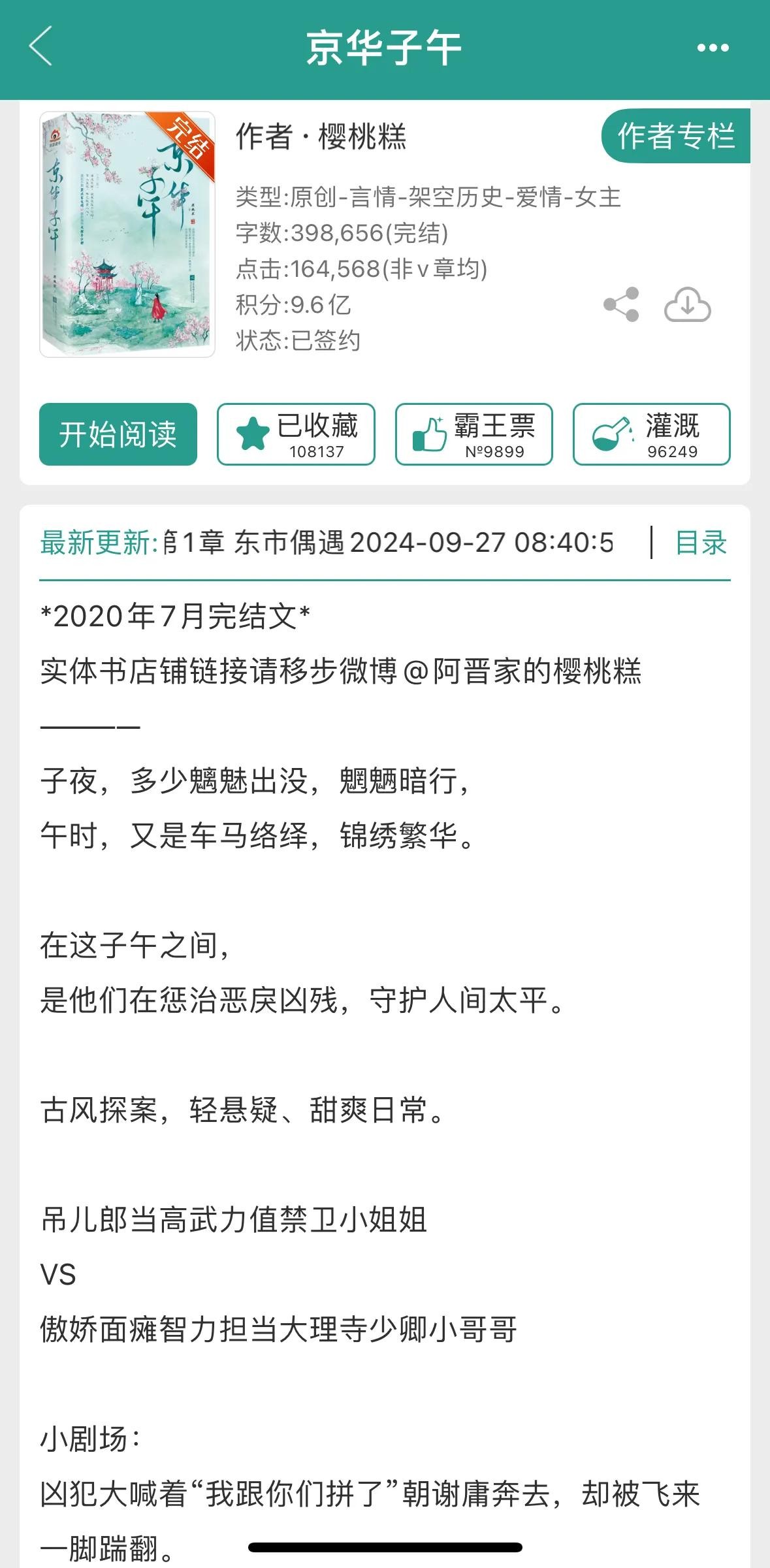 有权谋、有悬疑、有虐,有甜。虽然探案文,但文风幽默风趣,前面甚至有点儿搞笑,这本案情是贯穿整本的那种,看的停不下来!