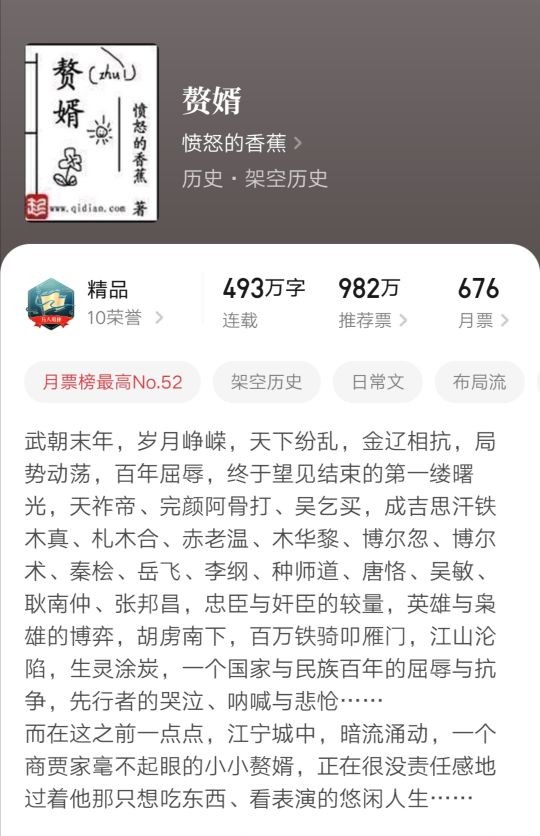 这本书大家一定很熟悉,十年磨一剑,说的就是赘婿了,现在已经更新到最后一卷,不过以此书的更新速度,今年是不可能完结了,香蕉精雕细刻的作品,也是良心之作。