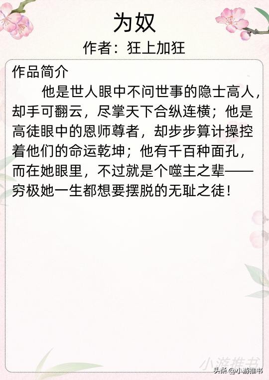安利十本超好看的小说,偏执病娇养成甜宠,一应俱全。 大家好,若曦又来给大家推荐好看的书籍了,下面一定有你喜欢的哦! #小说安利# #我要上微头条热门# #小说推荐书荒互助# #小...