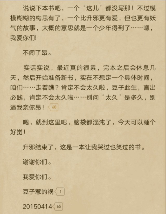 因为他新书一鸽就鸽了四年八个月了。2015年4月他在《升邪》完结感言里说过,新书不会太久就会与大家见面。然后这2020年就要来了,新书还没见影子。