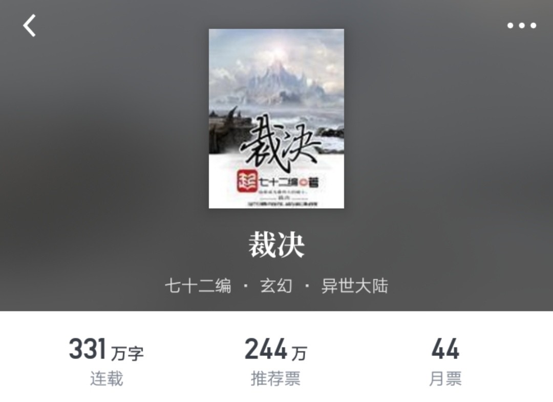 五本断更就没有下文的小说,七十二编的《裁决》在列,你看过吗?
