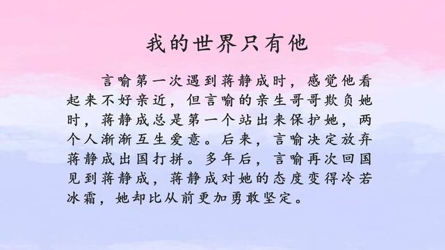 男主蒋静成,军人,女主言喻,青梅竹马,破镜重圆,《我就喜欢他那样》的姐妹篇。