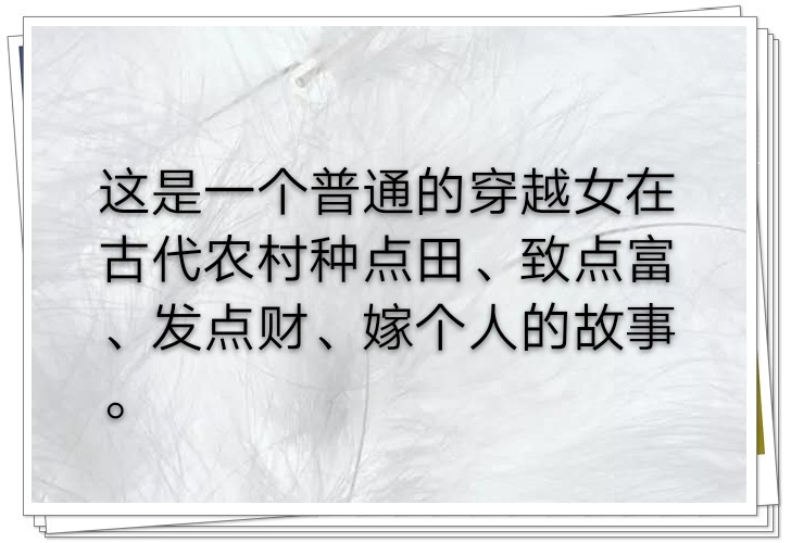 看种田文种着种着突然冒出来个大将军或者皇上什么的,真的很煞风景。