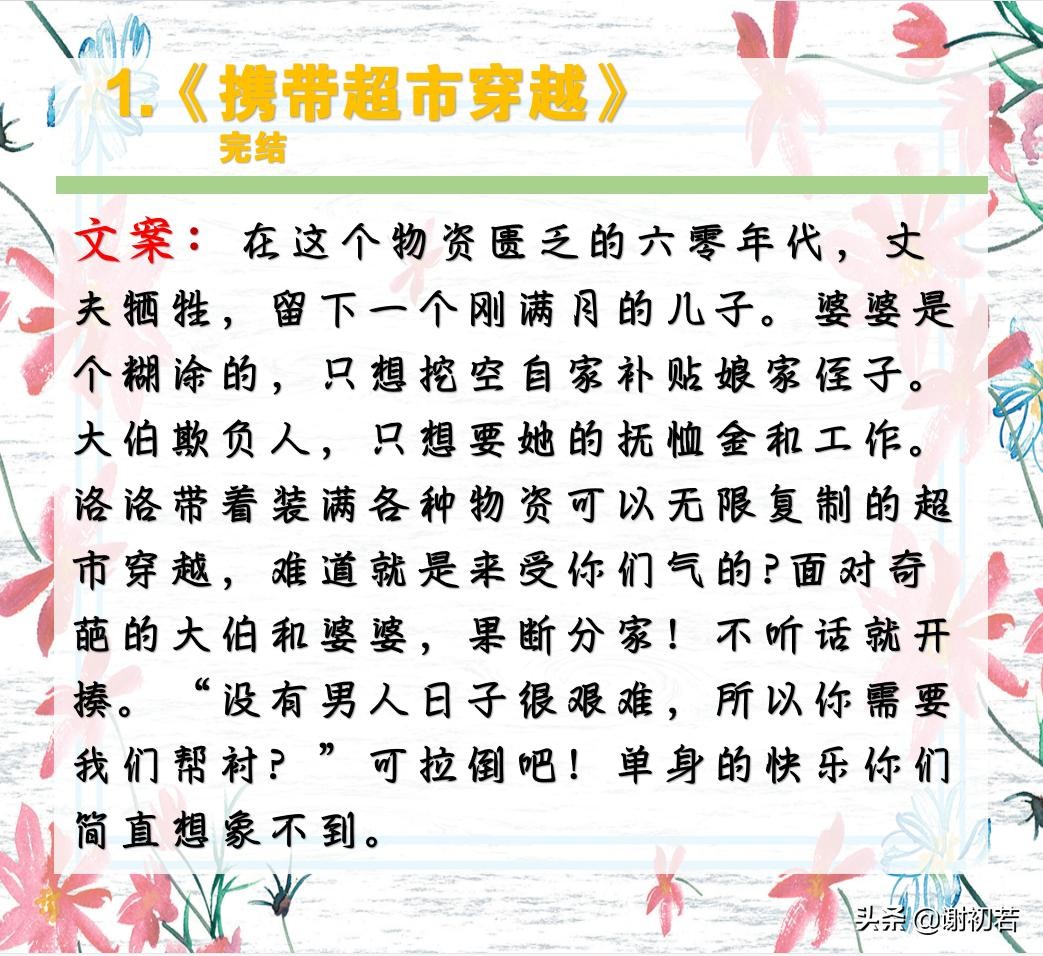 强烈安利两本年代小说,《携带超市穿越》和《穿书六零年》
