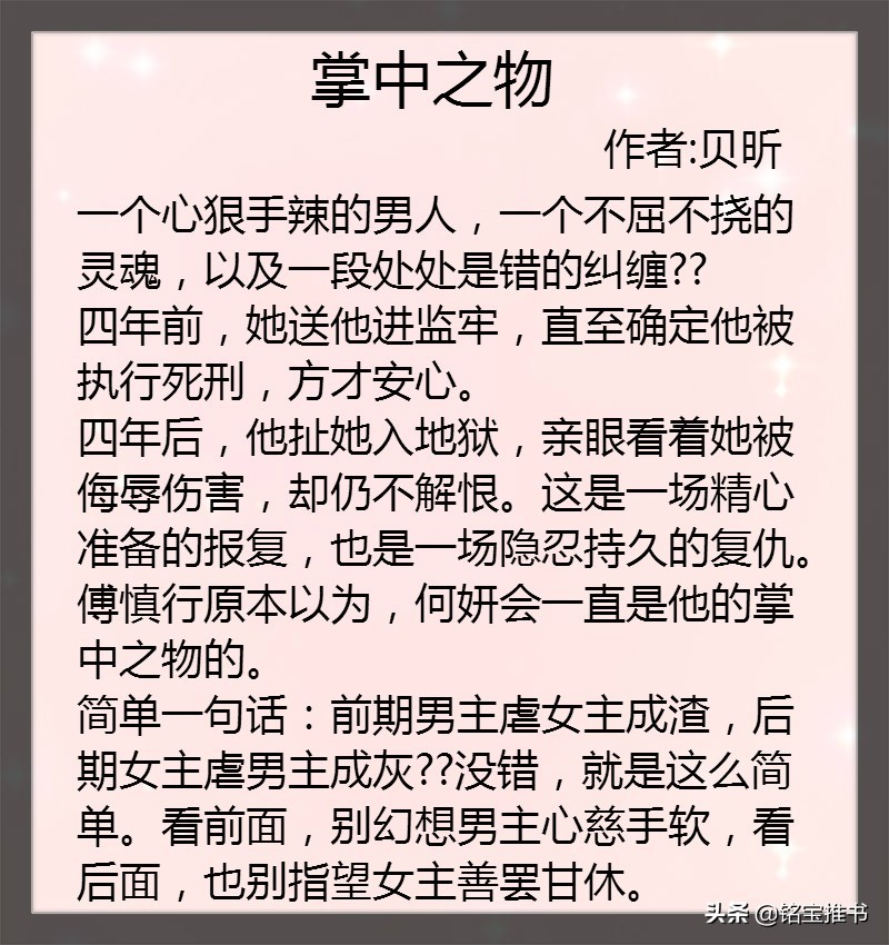 强取豪夺的经典代表作,讲述的是一个高干子弟死皮赖脸追一个家境贫寒的女孩子的故事。男主前期的强取豪夺,后来为哄女主开心,各种小手段的宠宠宠,都是本文可看的亮点。很好看的一篇文。