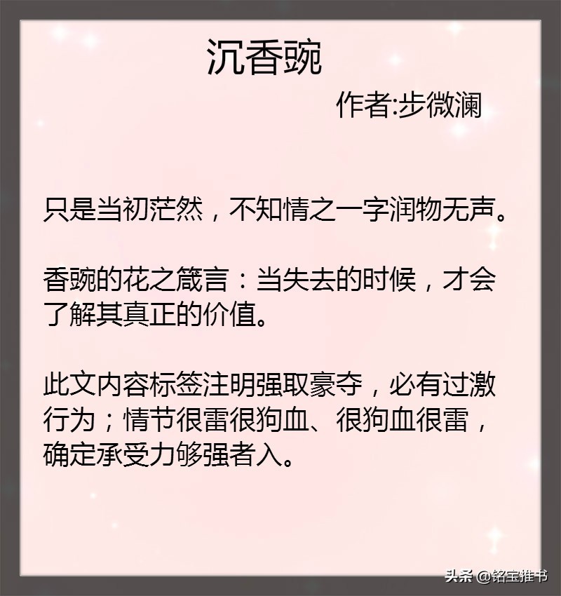 今天再给大家推荐一期强取豪夺文,男主强势霸道,病态的占有女主,有肉有剧情哦。