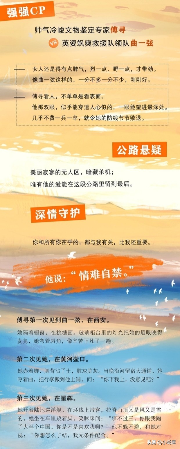 好久没有看到这么带感的公路文了,荷尔蒙爆表的鉴定专家与英姿飒爽的冷艳队长,火花四溅,看似是火与火,王与王的过招,你来我往,热辣与柔情的爱意,觉得特别够劲!很喜欢傅寻,出色的男人,稳重中又带点禁欲的感觉,也很喜欢曲一弦,这样的女人刷新了我对救援队队长的认知。还有那只貂,完全带入了作者自己的那只小动物,很可爱。