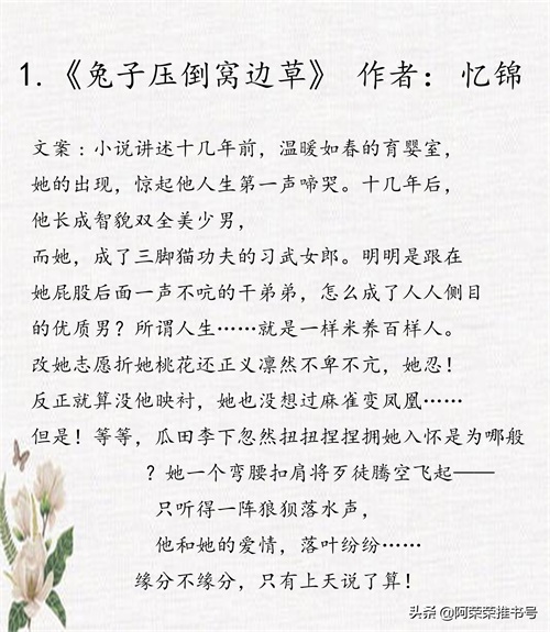 1.《兔子压倒窝边草》作者:忆锦