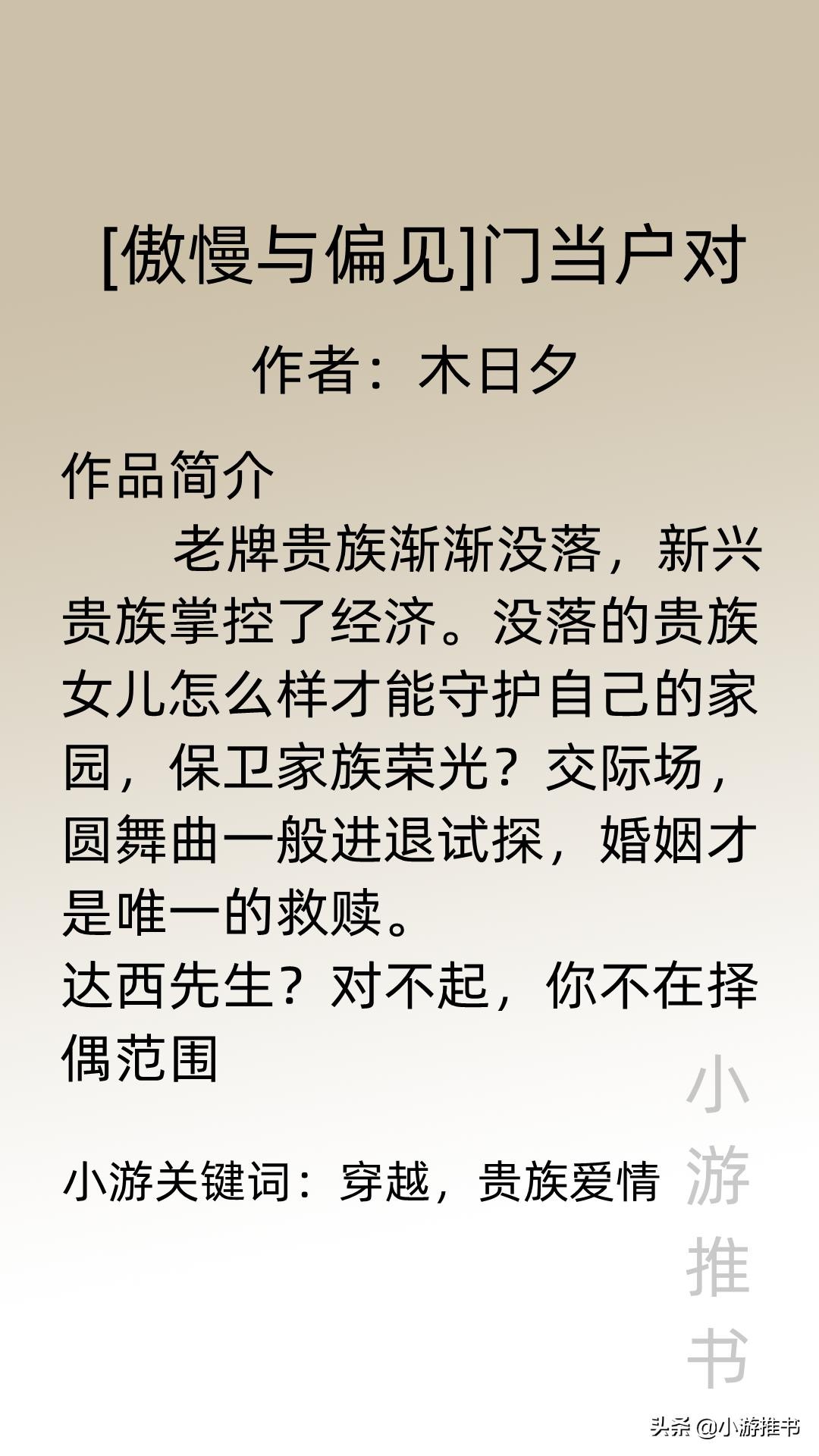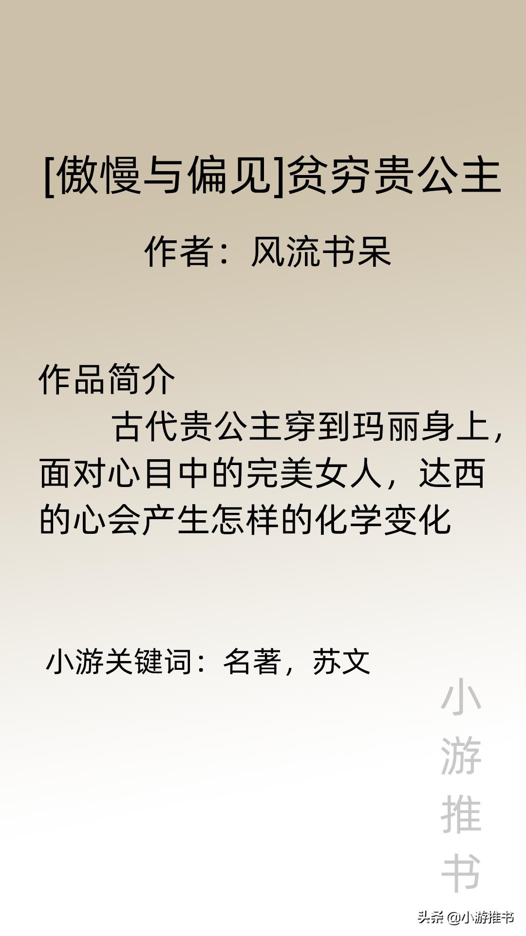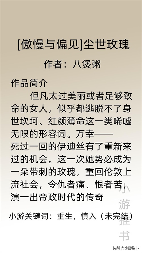 大家好,我是@小游推书,古言现言都是我爱看小说中的主旋律,今天推荐三本背景不一样的言情小说,主角或穿越或重生到西方名著《傲慢与偏见》中,在当时的社会背景以及对美丽时尚看法不同的情况下,再加上贫富差距,思想观念不一等问题影响着名著中各个配角。看主角如何坚定自我,吸引男主,走向一条康庄大道。