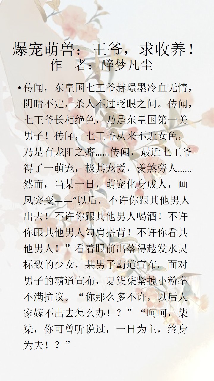 6、爆宠萌兽:王爷,求收养! 作 者:醉梦凡尘