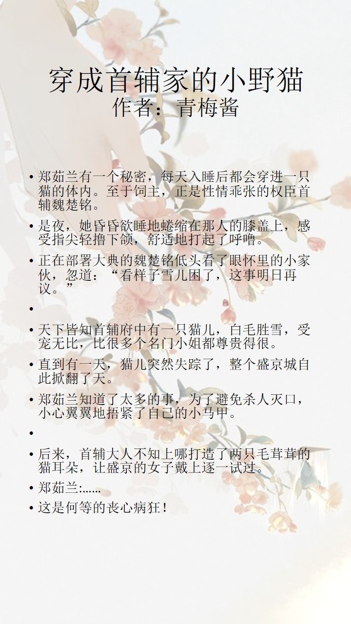 3、穿成首辅家的小野猫 作者:青梅酱