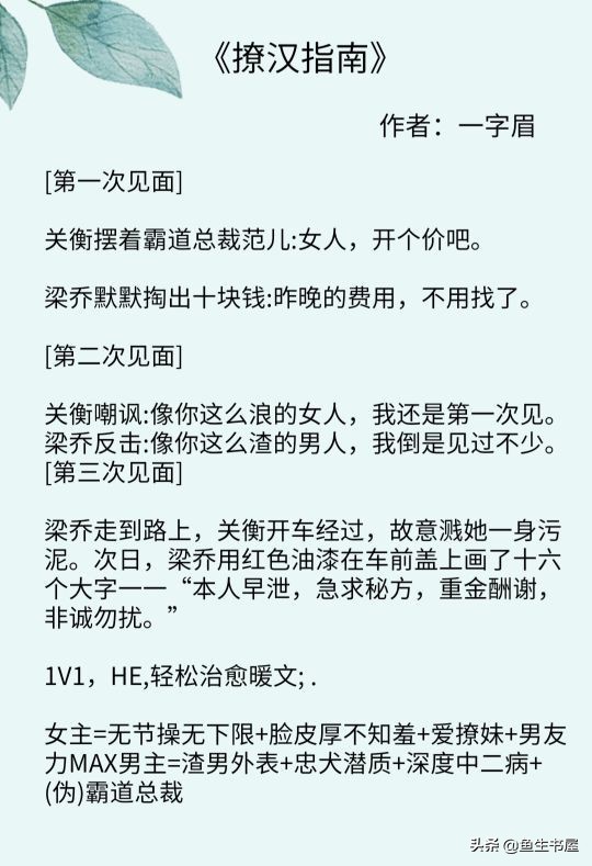1、《撩汉指南》作者:一字眉