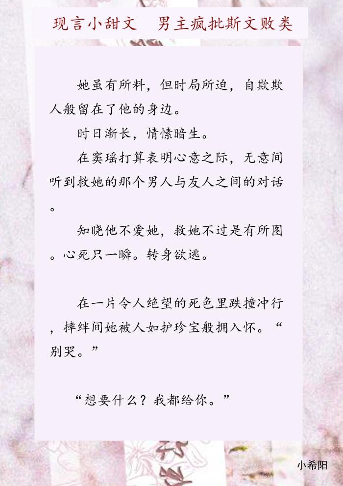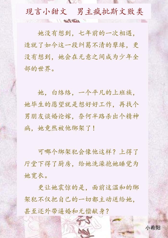今天推荐三本现代小甜文,男主疯批斯文败类,每一个偏执疯狂的人,在第一眼就认准了他的猎物,他的挚爱,他永生都不会背叛的人,愿为她舍弃生命,给她更好的生活。