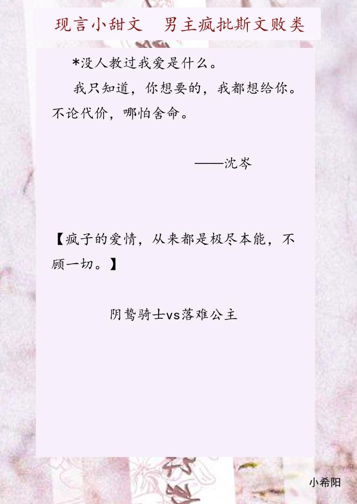 简要概括:对于疯子偏执狂之类的人,遇到一个人,一眼真的就沦陷啦,只想变得更有钱有地位,回来找他的小公主,宠她,不让她伤心。没人教过他爱是什么。我只知道,你想要的,我都想给你。不论代价,哪怕舍命。偏执狂有专属他们爱人的方式,只想把自己的宝贝留在身边。