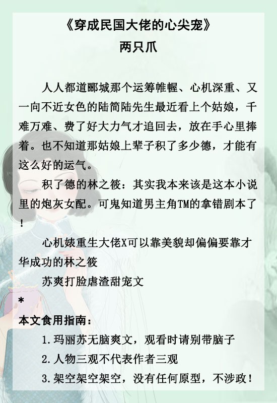 4、《穿成民国大佬的心尖宠》