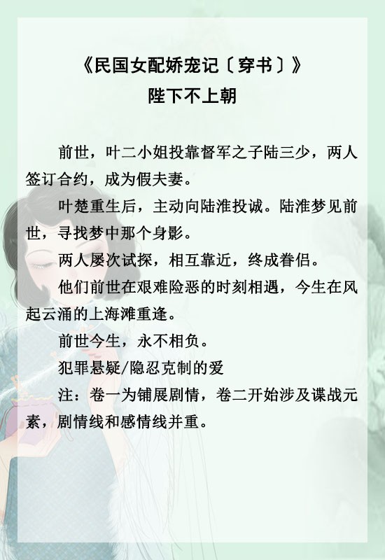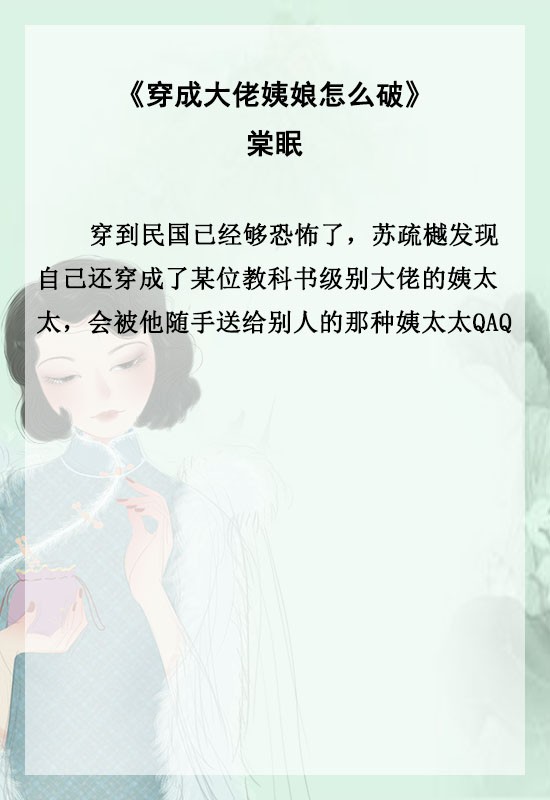 《民国反派大小姐〔穿书〕》《民国女配娇宠记〔穿书〕》《穿成大佬姨娘怎么破》《穿成民国大佬的心尖宠》《佛系民国女配[穿书]》