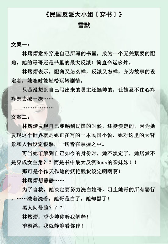 1、《民国反派大小姐〔穿书〕》
