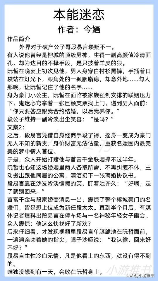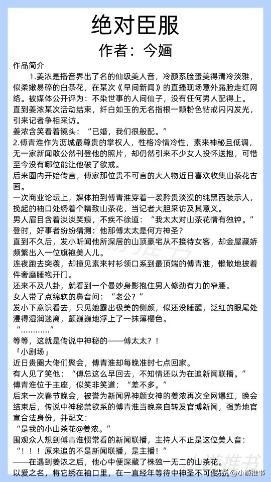 推荐10本今婳大大的人气现言甜文《绝对臣服》《玫瑰之下》