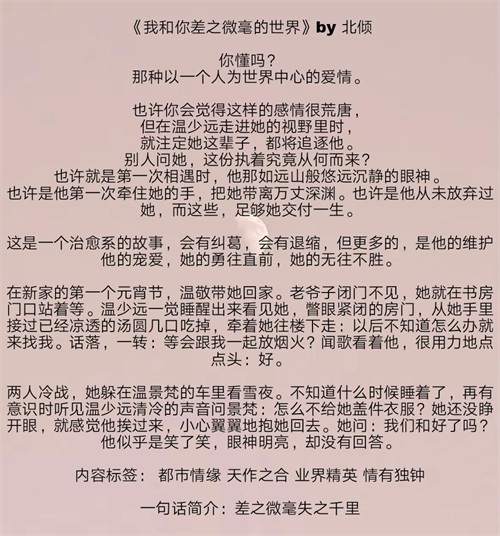 强推六部宝藏作品 现代言情养成文 评论区书单整理 最近整理了一下各位读者留言的建议书单,果然都是宝藏作品,今天推荐六部给更多的读者,希望大家喜欢。感谢大家的关注和支持...