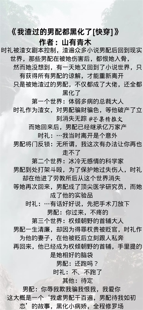 《我渣过的男配都黑化了[快穿]》作者:山有青木