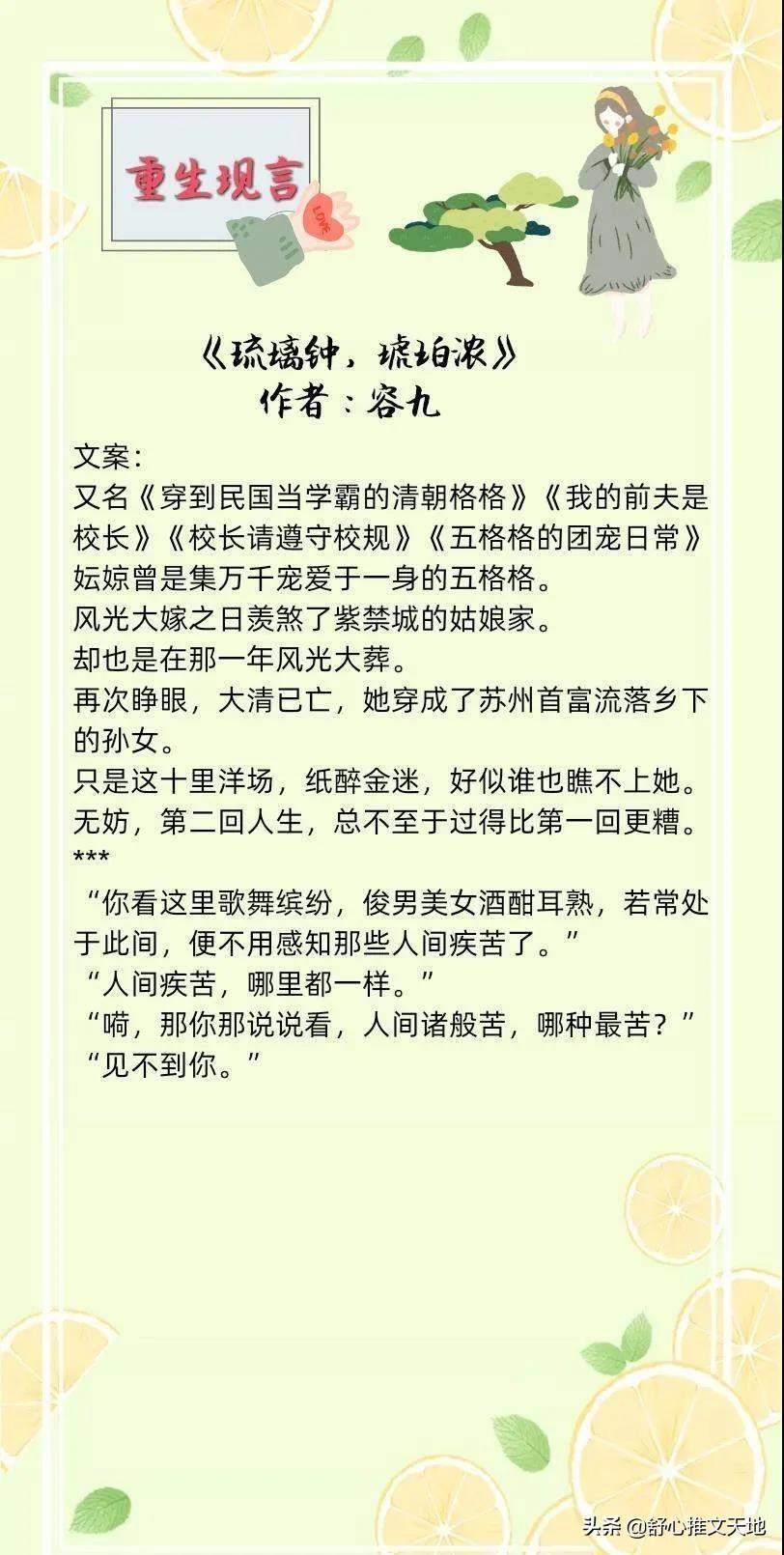 重生现言小说文笔好高质量 重生类的现代言情文推荐