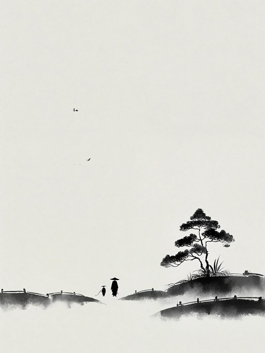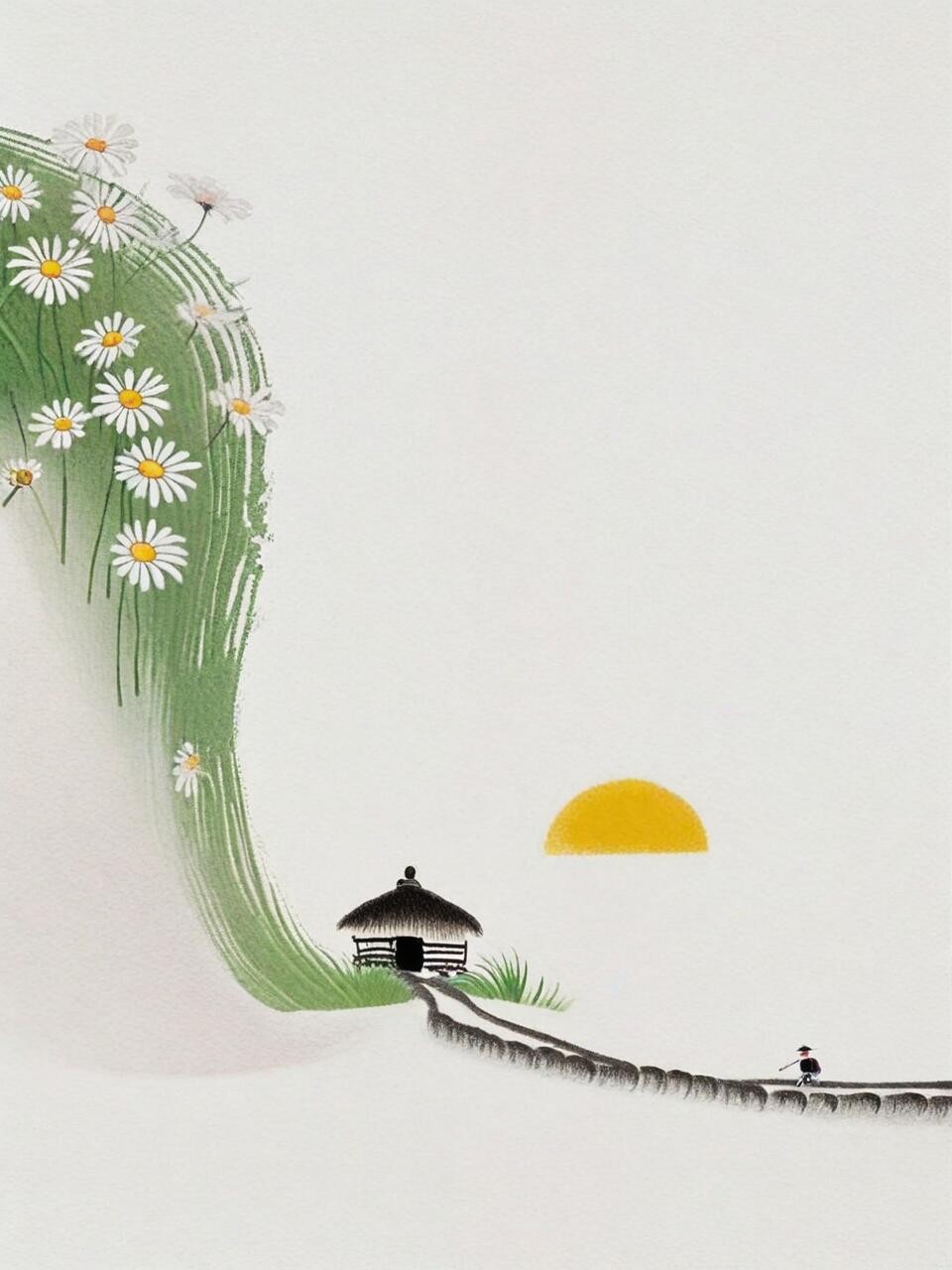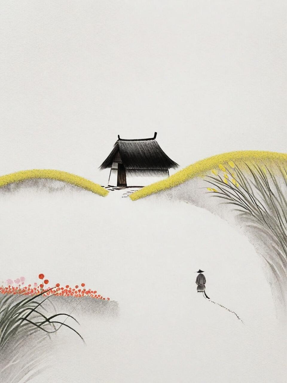 一种超凡脱俗、宁静淡泊的氛围,让人的心灵仿佛沉浸在这远离尘嚣、高远清幽的世界中,心弦被这种纯粹而又充满精神追求的田园生活所触动,对宁静、自由和精神富足的深深向往。