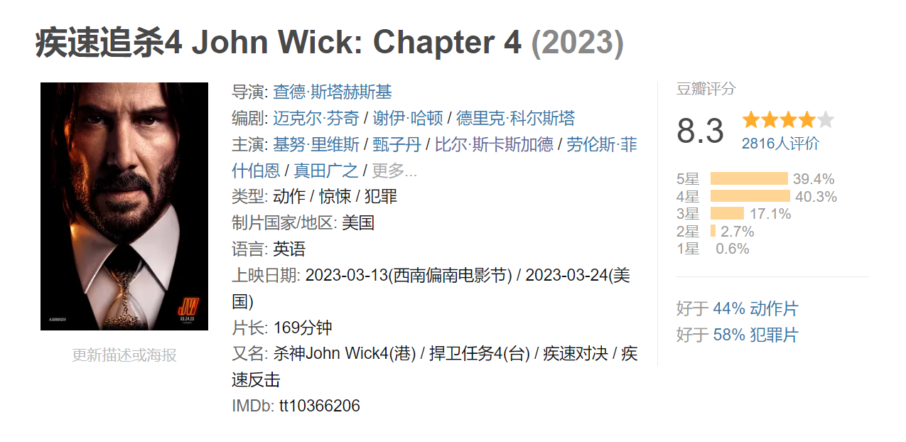 看完可以负责任地说,《疾速追杀4》距离经典和完美一步之遥。