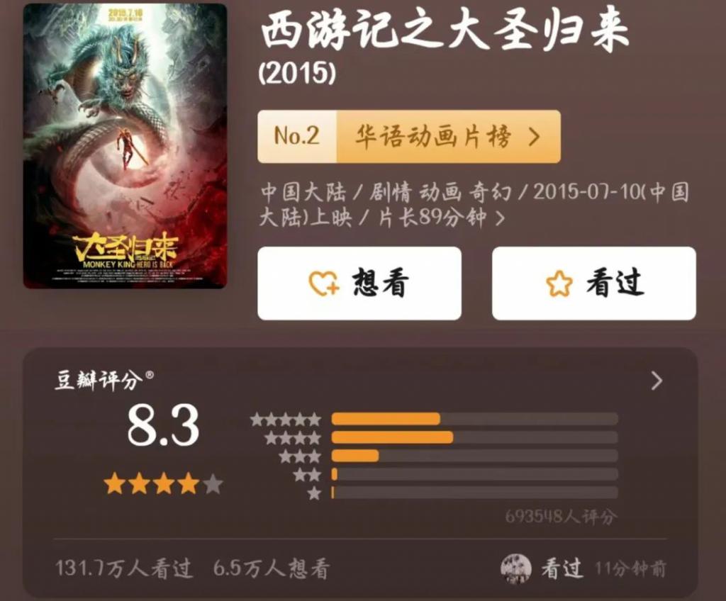 2015 年,一部豆瓣评分 8.3,票房 9.54 亿的《大圣归来》,让所有人都看到了国产动画的可能性。