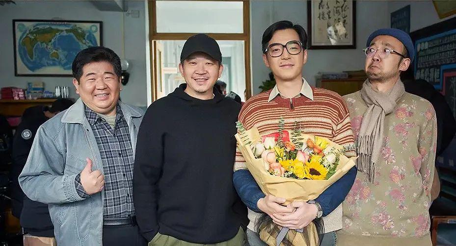 杀青合影,左二为饶晓志,右一为王子川