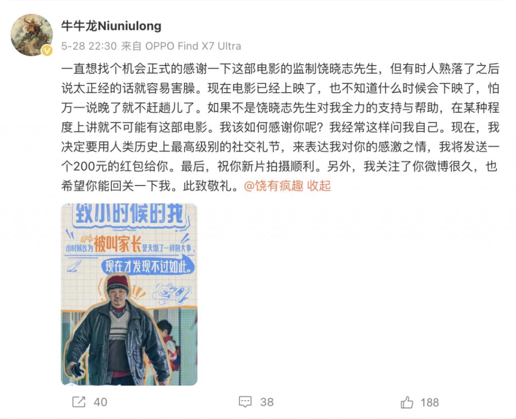 导演王子川发文感谢饶晓志