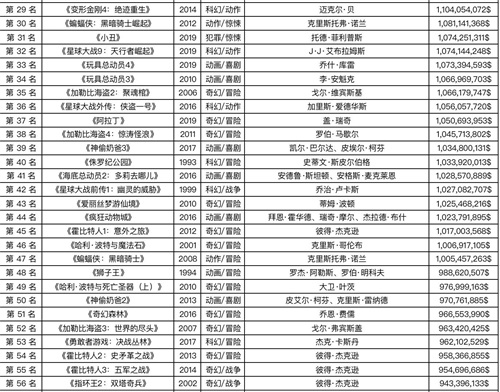 全球电影票房排行榜前100名