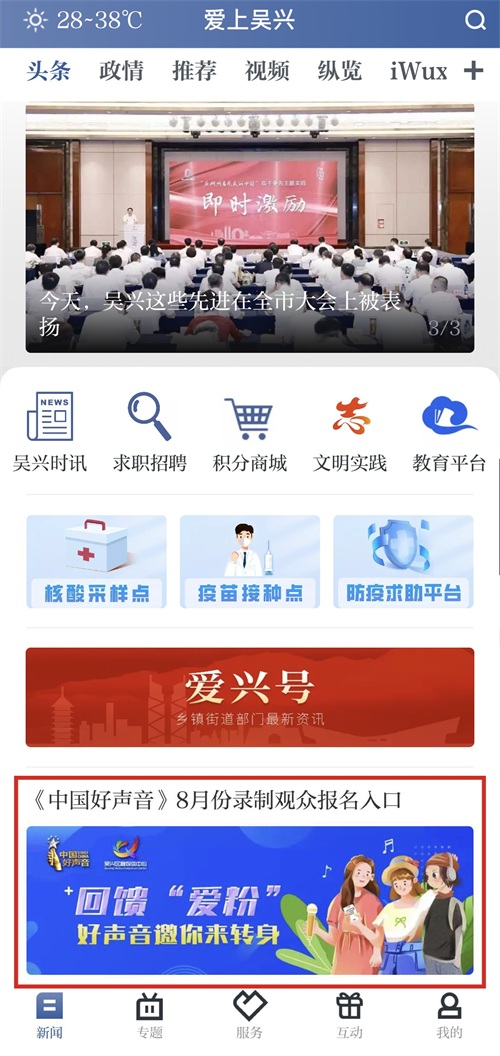届时可以登录爱上吴兴APP首页