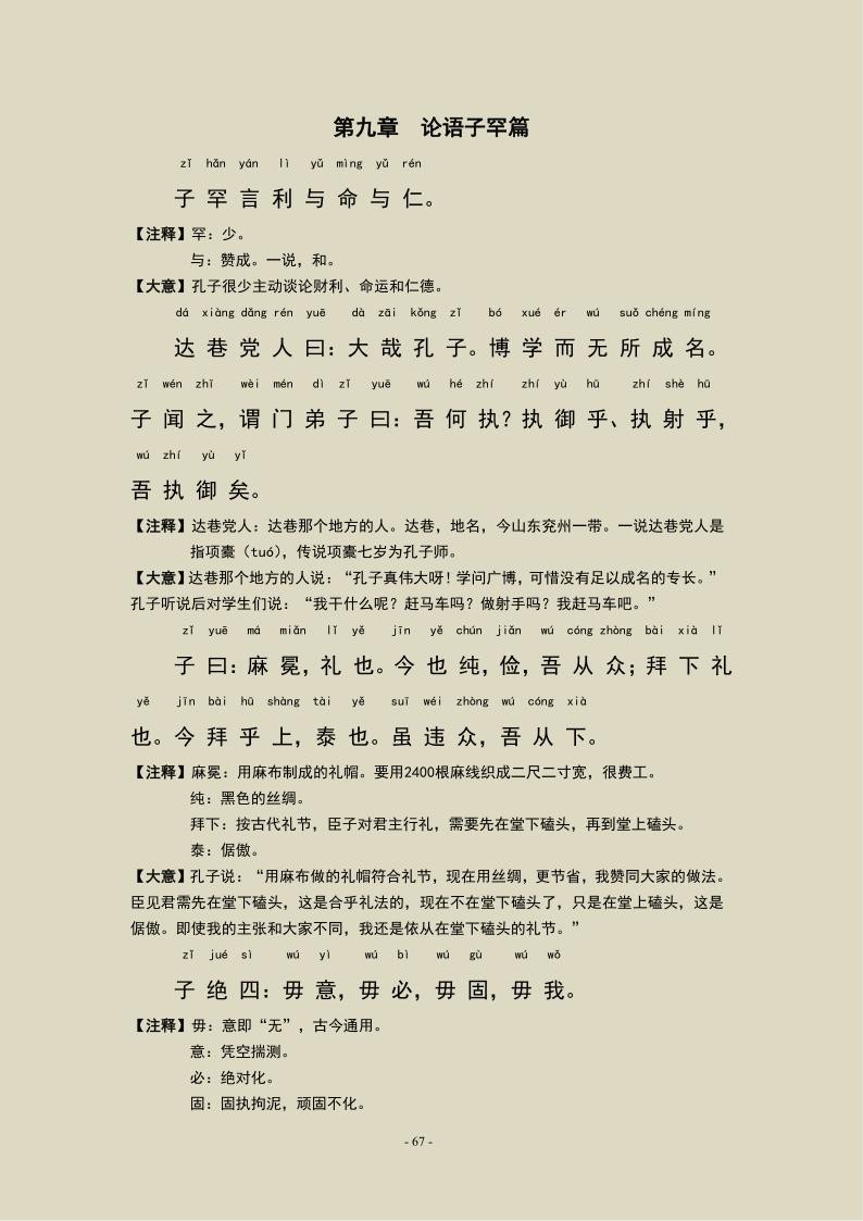 《论语》,是孔子弟子及再传弟子记录孔子及其弟子言行而编成的语录集,成书于战国前期。全书共20篇492章,以语录体为主,叙事体为辅,较为集中地体现了孔子及儒家学派的政治主张、伦理思想、道德观念及教育原则等。今天分享的是论语的第九篇内容,一起学习吧!