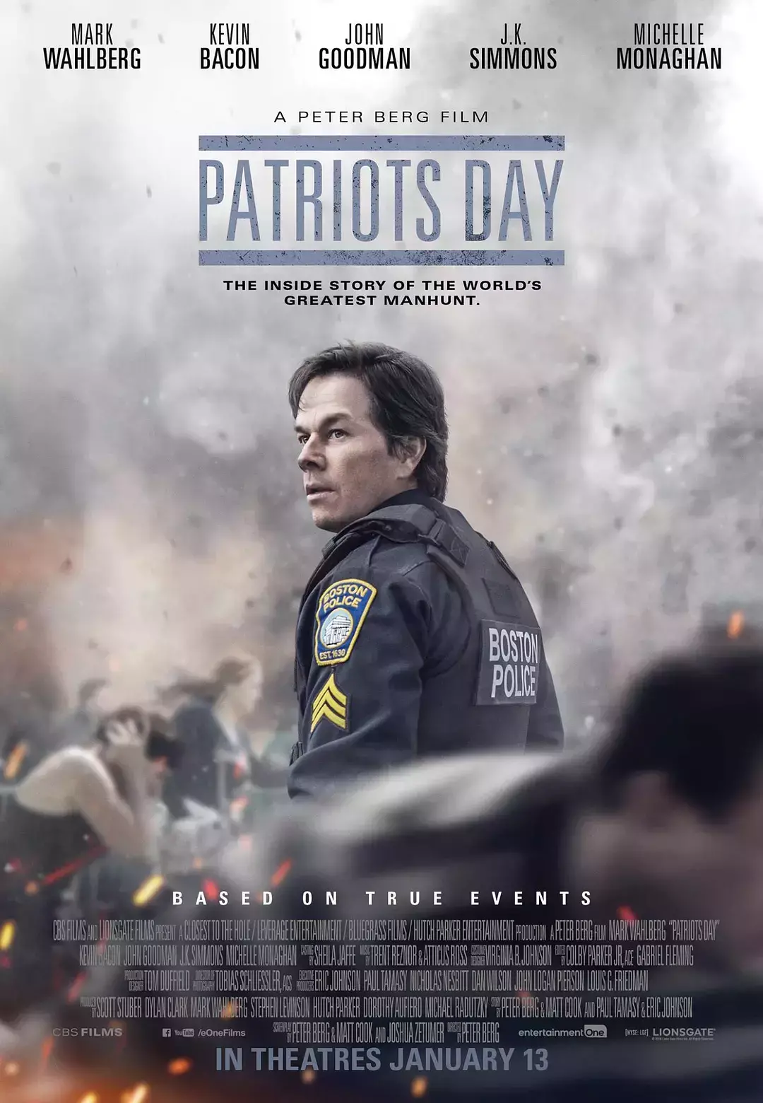 《恐袭波士顿》根据2013年的波士顿马拉松爆炸事件改编,由美国狮门影业公司发行,由彼得·博格执导,马克·沃尔伯格、梅利莎·拜诺伊斯特、米歇尔·莫娜汉、凯文·贝肯联合主演的灾难片。