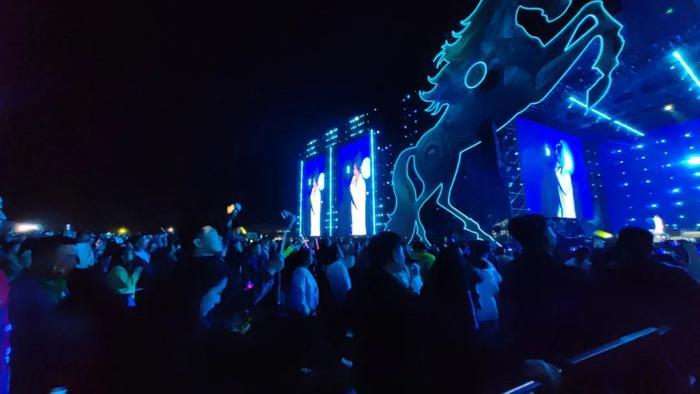 “想问你的一颗心,什么时候送给我,骑上我的小骆驼,带你去看日不落”,乌兰图雅的电音舞曲版《来跳舞》与音乐节火热的现场完美融合,大家现场跟着节奏欢快舞动,将音乐节现场气氛再次推向高潮。