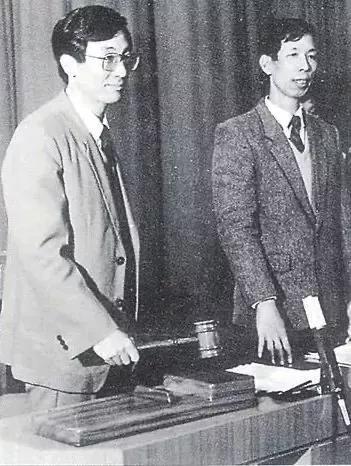 △1987年12月1日,时任深圳市规划国土局局长刘佳胜(左)一槌击下新中国土地使用权第一拍