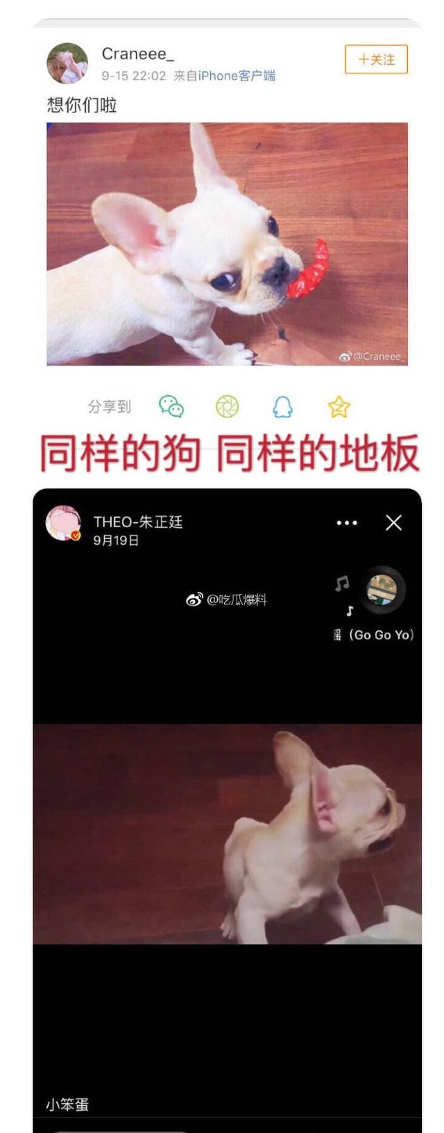 小编不得不感叹网友们都是神一样的存在,能从一点点的蛛丝马迹中分辩出来这么多的信息,简直就是神探附身啊有木有?不过也难怪粉丝们会觉得朱正廷有女朋友,看这个女孩子的微博真的是觉得甜甜的。弥漫着恋爱的酸臭味。在微博上晒出了一只狗,狗的品种一样可以理解,但是不可能连家里的地板都是一样的吧!谁能给小编解释解释。