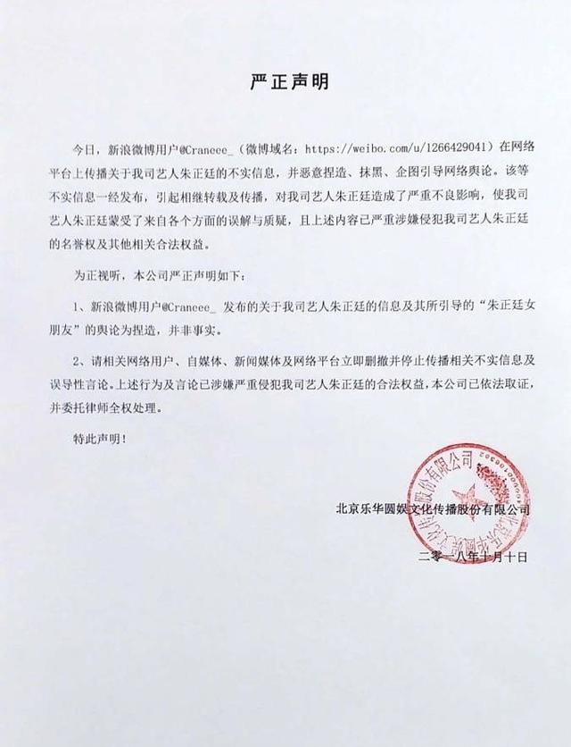 所幸的是,乐华十分给力,在事情发生不久之后就赶紧给了回复,在微博上公开声明,声称此次事件为恶意捏造抹黑,他们将依法追究责任。心疼的抱抱朱正廷,唉,真的是造谣一张嘴,辟谣跑断腿啊!这下粉