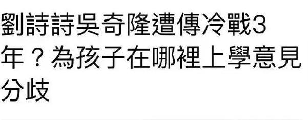 据说此件二人因为孩子的教育问题出现分歧,吴奇隆让孩子留在台湾上学,刘诗诗对孩子的教育问题则持不同意见,想让孩子在大陆上学。两人就这样一直僵持不下,冷战三年,早已貌合神离。