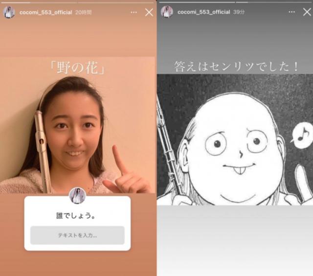 “‘请问Cocomi除了鬼灭(之刃)还喜欢什么漫画?’真是一个好问题!所有JUMP系漫画我都喜欢。全部。我很喜欢JUMP系作品。《黑子的篮球》、《排球少年!》、《黑色五叶草》、《咒术回战》。(中略)《海贼王》也无需多言,必须喜欢。《约定的梦幻岛》也好看,这部最开始吓了我一跳呢。(中略)啊还有《全职猎人》!”(2020年4月14日)