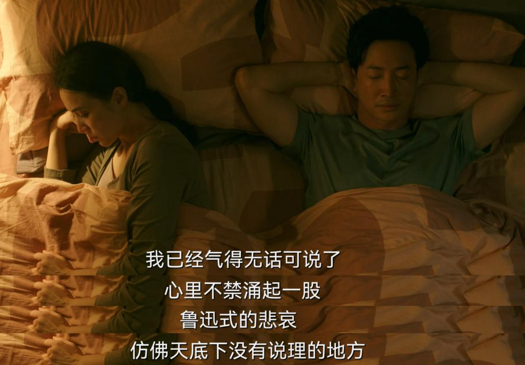 比如女主跟男主在家吵完架之后,一般人内心的想法大概是 " 气死我了 ",但她内心却是一段文艺的独白—— " 我已经气得无话可说了,心里不禁涌起一股鲁迅式的悲哀,仿佛天底下没有说理的地方。"