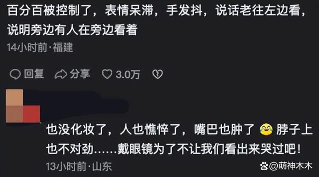 不仅是插座的问题,有网友仔细观察美七的身上发现有一些伤痕,比如嘴唇上,还有脖子周围以及胸口的位置都有一些疑似针眼的痕迹,并且美七在录视频的时候眼神时不时向右侧看,疑似被人控制。