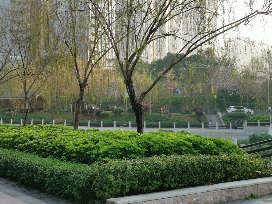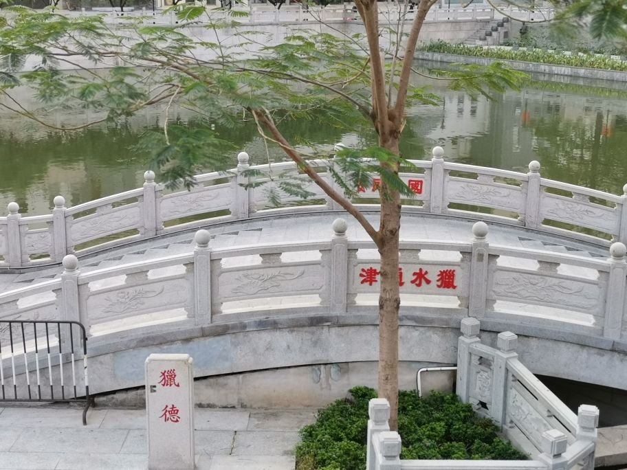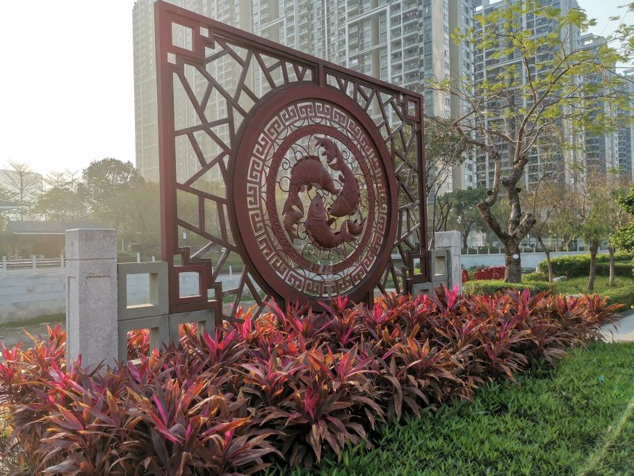这是住宅区去往公园的通道,道路上错落有致的黑色石板是带有字迹的浮雕,都是拆迁后过去的老巷以及一些老建筑的名称,镶嵌在道路上可能也算是体现一种怀旧情怀吧!