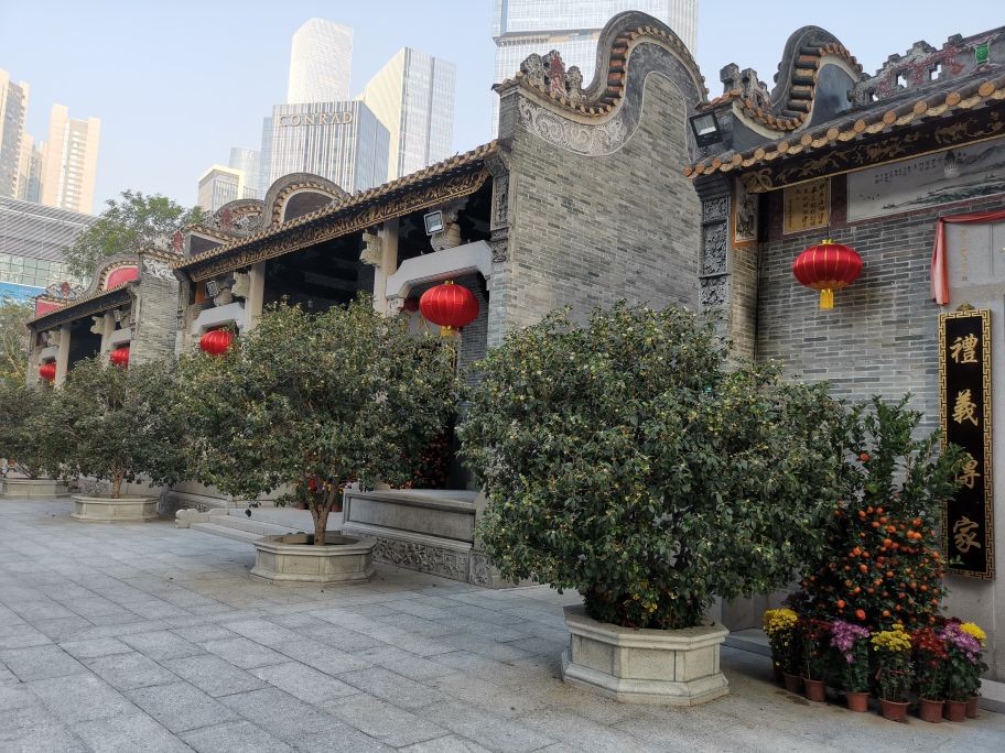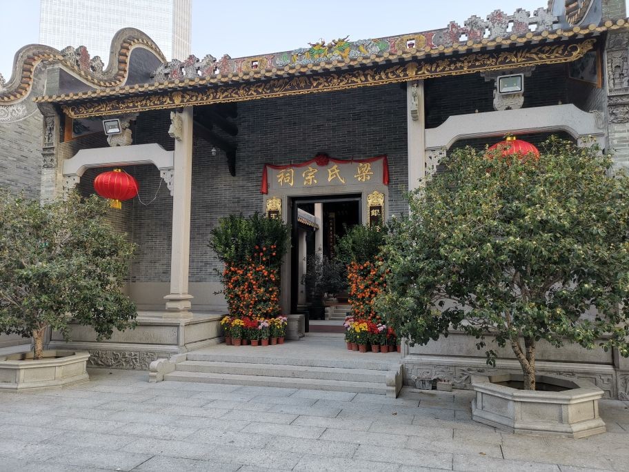 宗祠是中国传统文化和家庭文化的象征,祭祀祖先之所。这是拆迁重建后的猎德宗祠文化碑记以及几家宗祠外景。