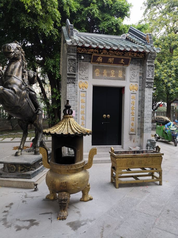 这是猎德村里的文昌庙。猎德村民由古至今非常注重文化传承,小小村落在古时也曾出过2名进士,2名解元,9名举人和86名秀才。正值开学季,有父母在文昌庙前为学子焚香,祈盼孩子学业有成。