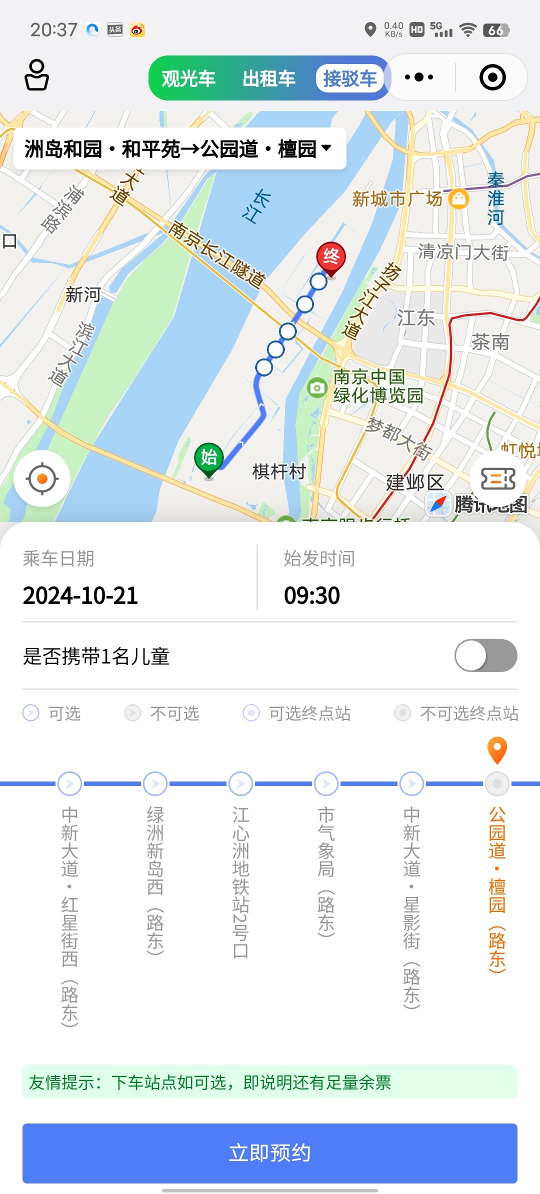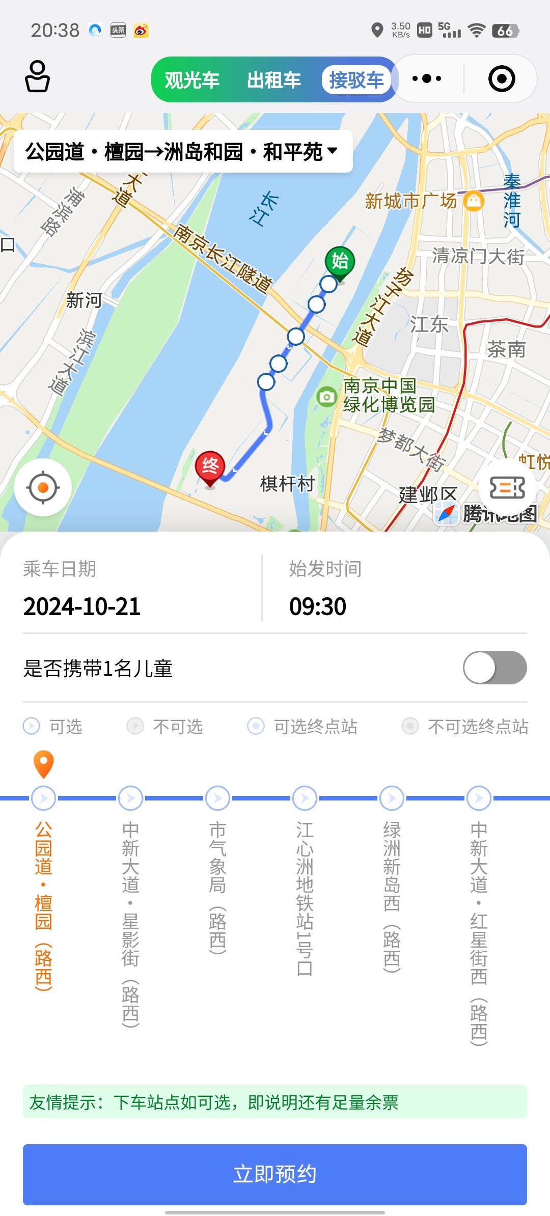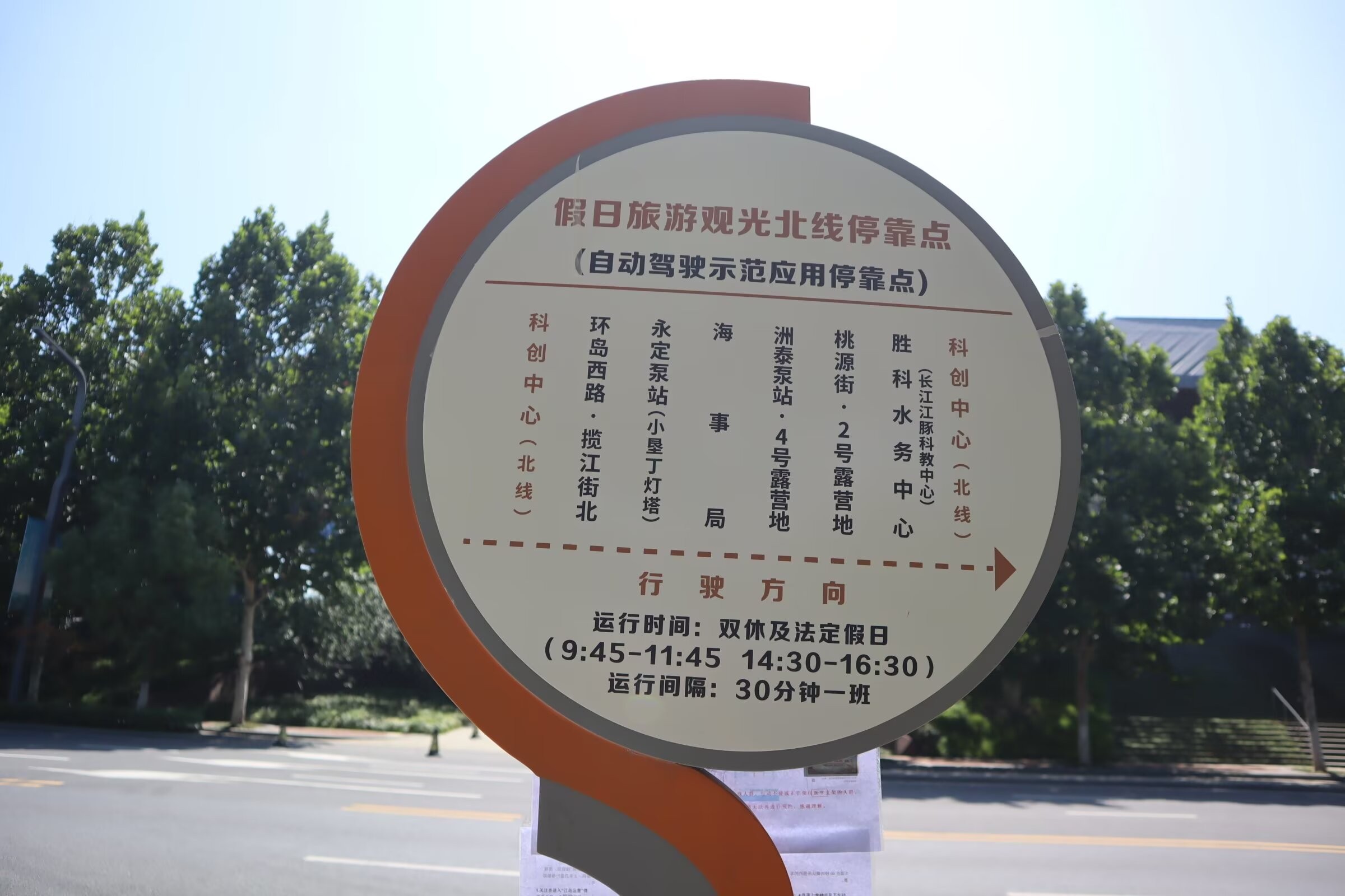 3.江心洲地铁站2号出口出右转至听涛路可免费换乘江心洲假日旅游观光南线(科创中心(南线)-科创中心(南线)),江心洲假日旅游观光北线(科创中心(北线)-科创中心(北线)),无人驾驶需要预约。