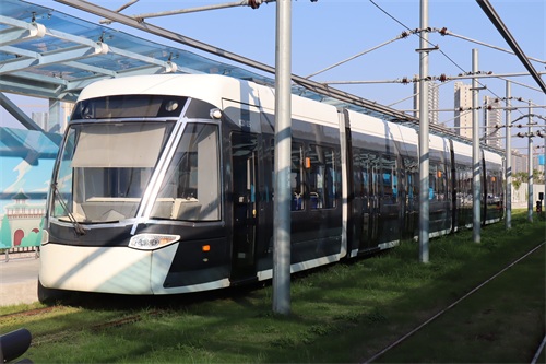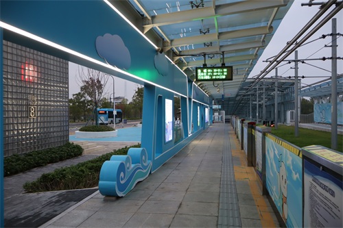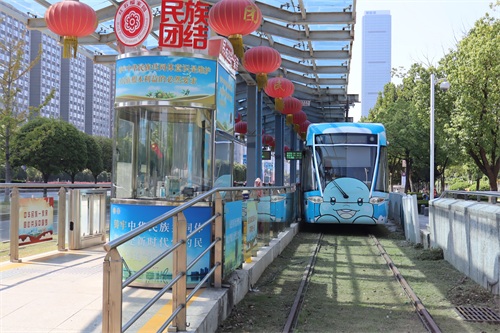 海峡城接驳公交与早晚高峰有轨电车严格按照发车时刻表发车