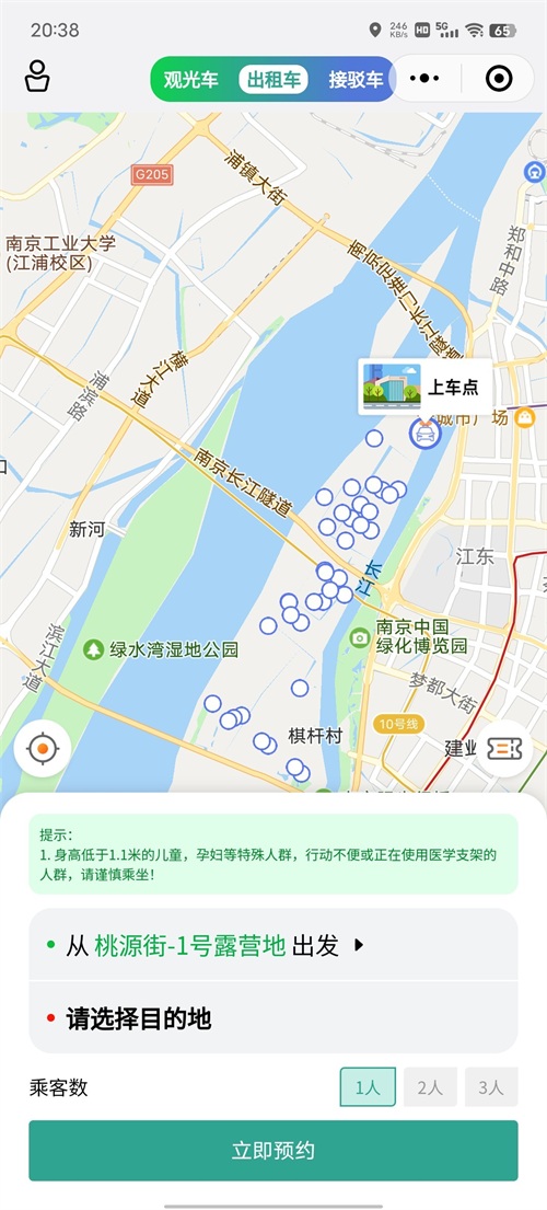 6.江心洲上有无人驾驶出租车可以体验,乘车需系安全带,在微信公众号江岛运行体验平台预约。